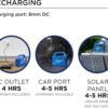 With two 120V AC outlets, three USB ports including a USB-C and QualComm Quick Charge 3.0 USB outlet, it also comes with three convenient 5mm DC outputs.