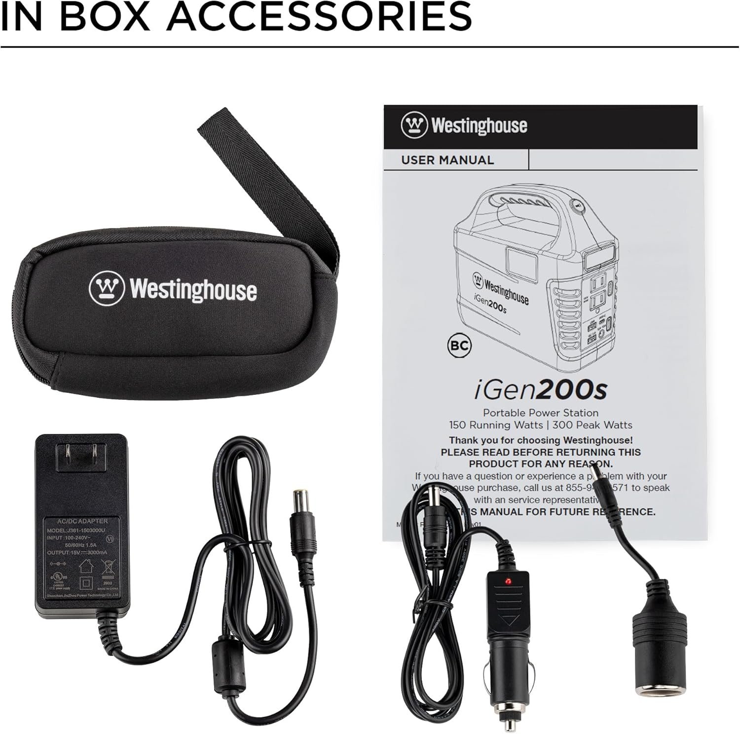 Comes with AC and cigarette lighter outlet accessories for use with cars, walls, and generators. Includes solar panel capability to maintain the power bank of the iGen200s.