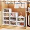 4 Tier Storage Bins with Lids are practical, stackable plastic containers designed for organizing clothing, bedding, shoes, or miscellaneous household items. Each bin can hold up to 23 quarts, and the four units together can be assembled with wheels for mobility or folded down when not in use. The clear, front-opening doors allow for easy visibility, while the magnetic closures help keep contents secure, making these bins adaptable for use in closets, laundry rooms, kids’ rooms, or even car trunks.
