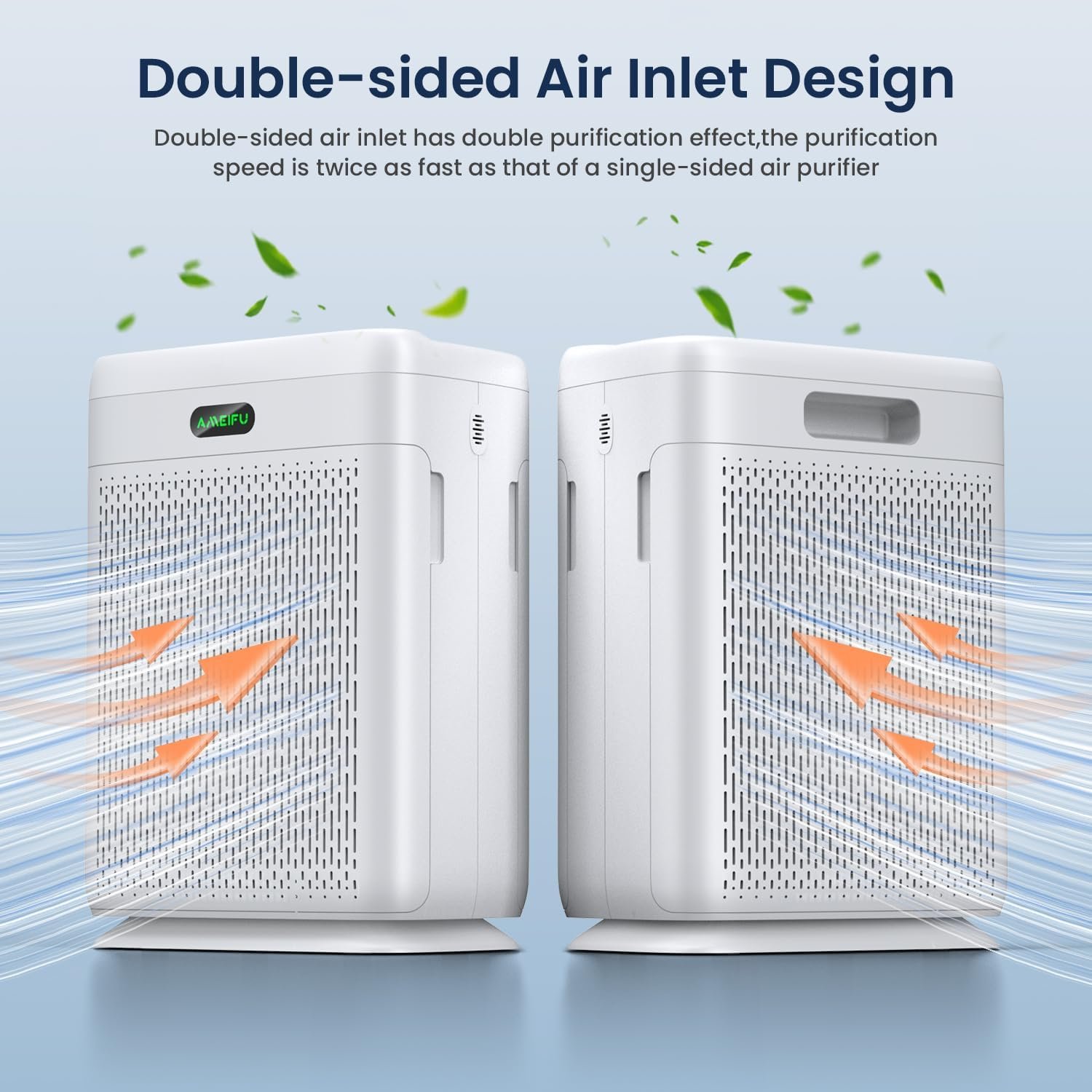 - Advanced Double-Sided Air Purifier: This dual-sided air intake HEPA air purifier cleans air from both sides simultaneously, delivering 2x faster purification compared to traditional single-intake models. Perfect for large spaces, it ensures cleaner air in less time, making it an ideal choice for homes, offices, and more