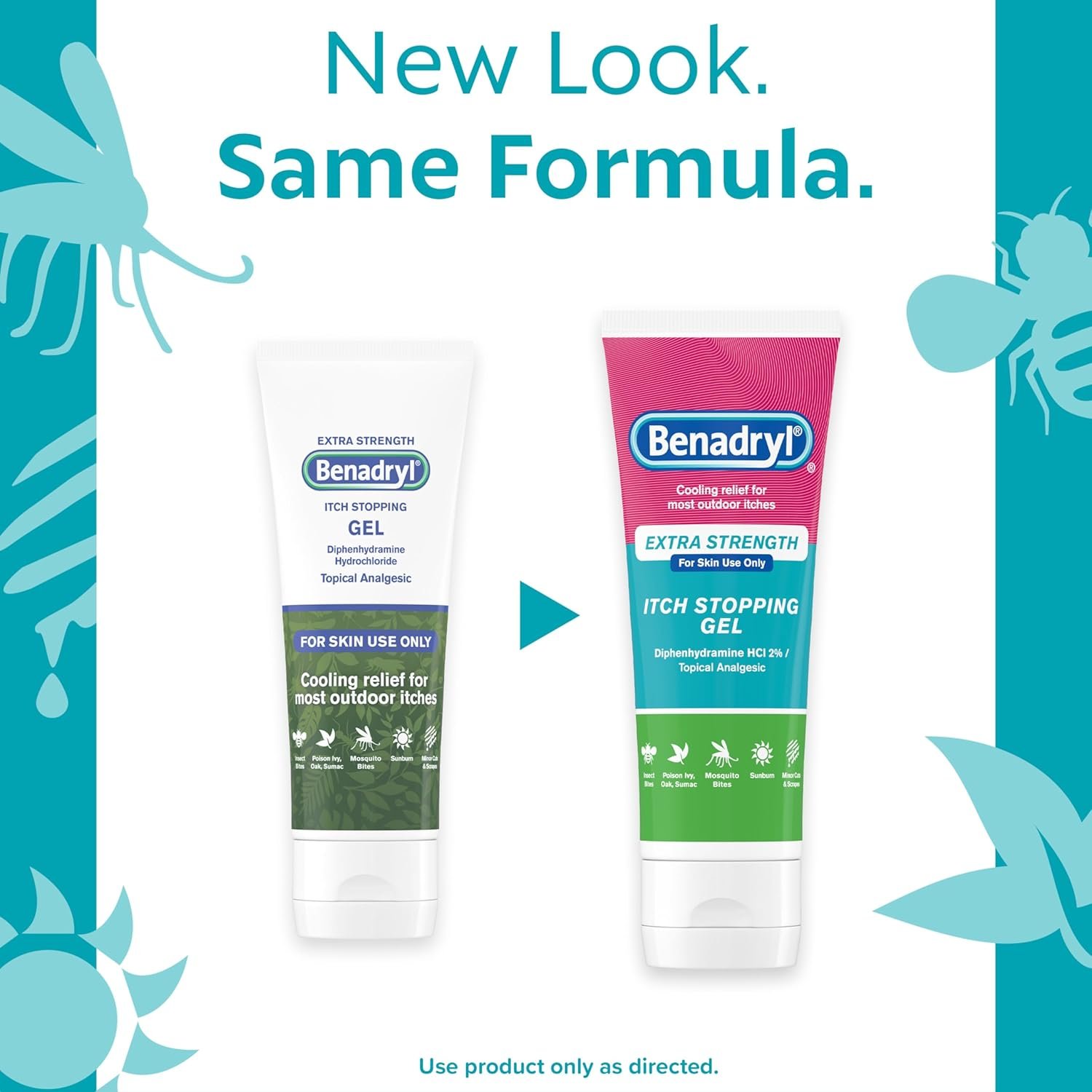- ANTI ITCH GEL: Benadryl anti itch gel temporarily provides pain and itch relief associated with insect bites, minor burns, sunburn, minor skin irritation, minor cuts and scrapes, and rashes due to poison ivy and poison sumac.