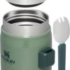 The STANLEY Classic Food Jar and Spork keeps meals hot or cold for up to 7 hours, features a leakproof lid and integrated spork, and is crafted from durable, BPA-free stainless steel for earth-friendly, long-lasting use. Perfect for travel and daily life, this versatile container from STANLEY combines convenience, reliability, and sustainability in one package.