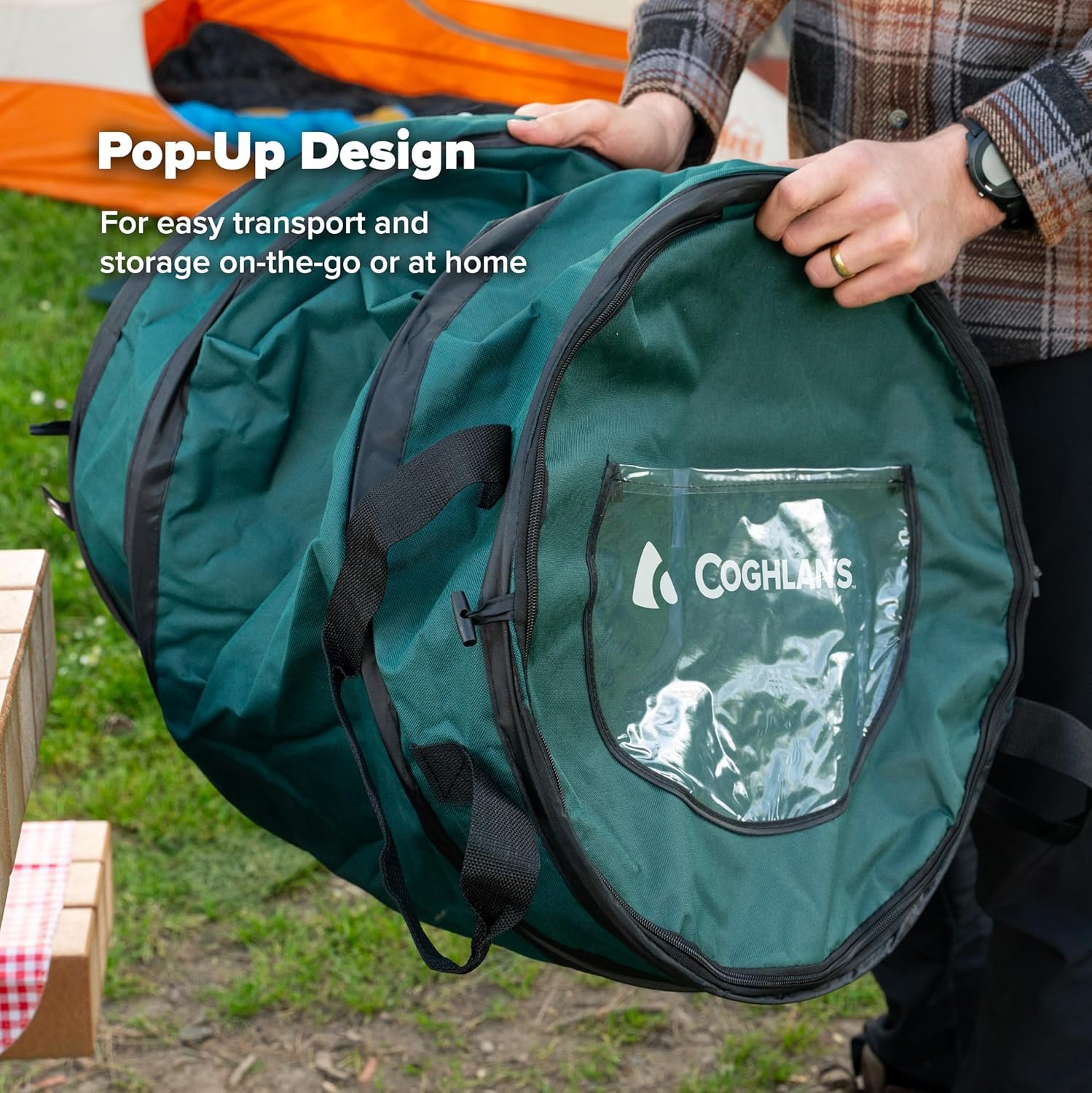 Coghlan's Deluxe Pop-Up Trash Can is a spacious, durable 29.5-gallon garbage bin featuring a collapsible design, zippered lid, and secure anchoring—perfect for camping, home, or outdoor events. With sturdy 600D polyester, alligator bag clips, and user-friendly features, this essential from Coghlan’s ensures hassle-free waste management wherever you go.