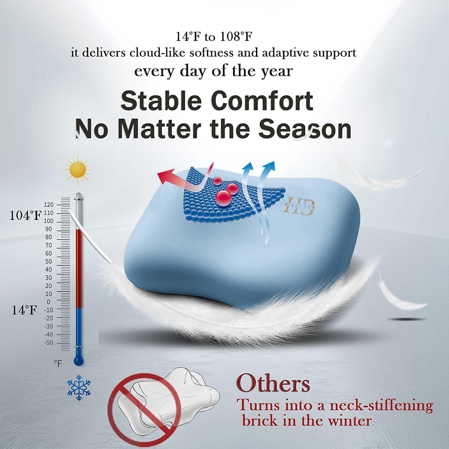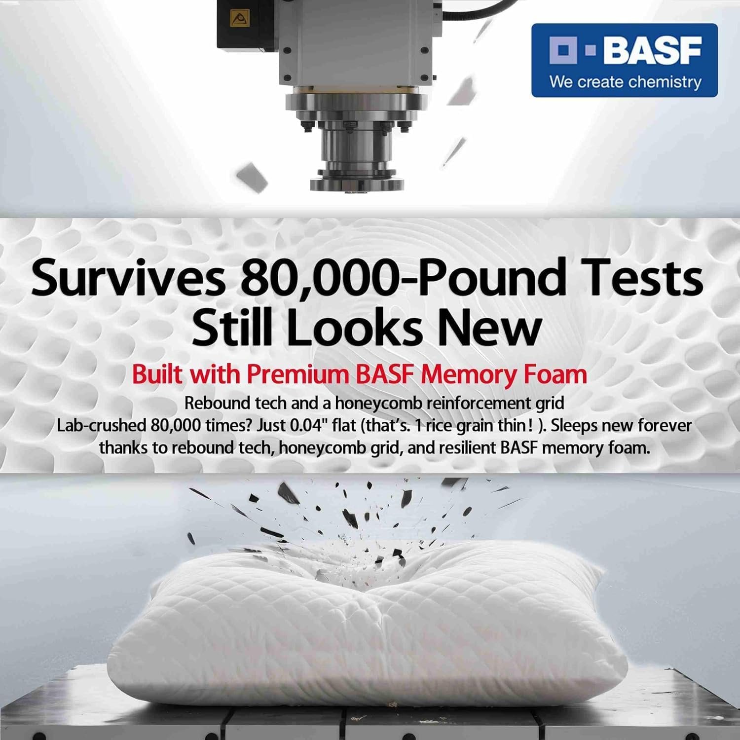 - Advanced Pressure Relief & Temperature Regulation: Built with premium BASF 50D memory foam and a honeycomb molecular support core, this pillow delivers cloud-like comfort and excels in both pressure relief and temperature regulation. Tested to perform consistently from 14°F to 108°F—so no more brick-like pillows in winter, or sweaty messes during summer.