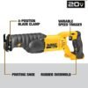 - 4-position blade clamp of DEWALT 20V reciprocating saw allows for flush cutting and increased positional versatility with tool-free blade changes