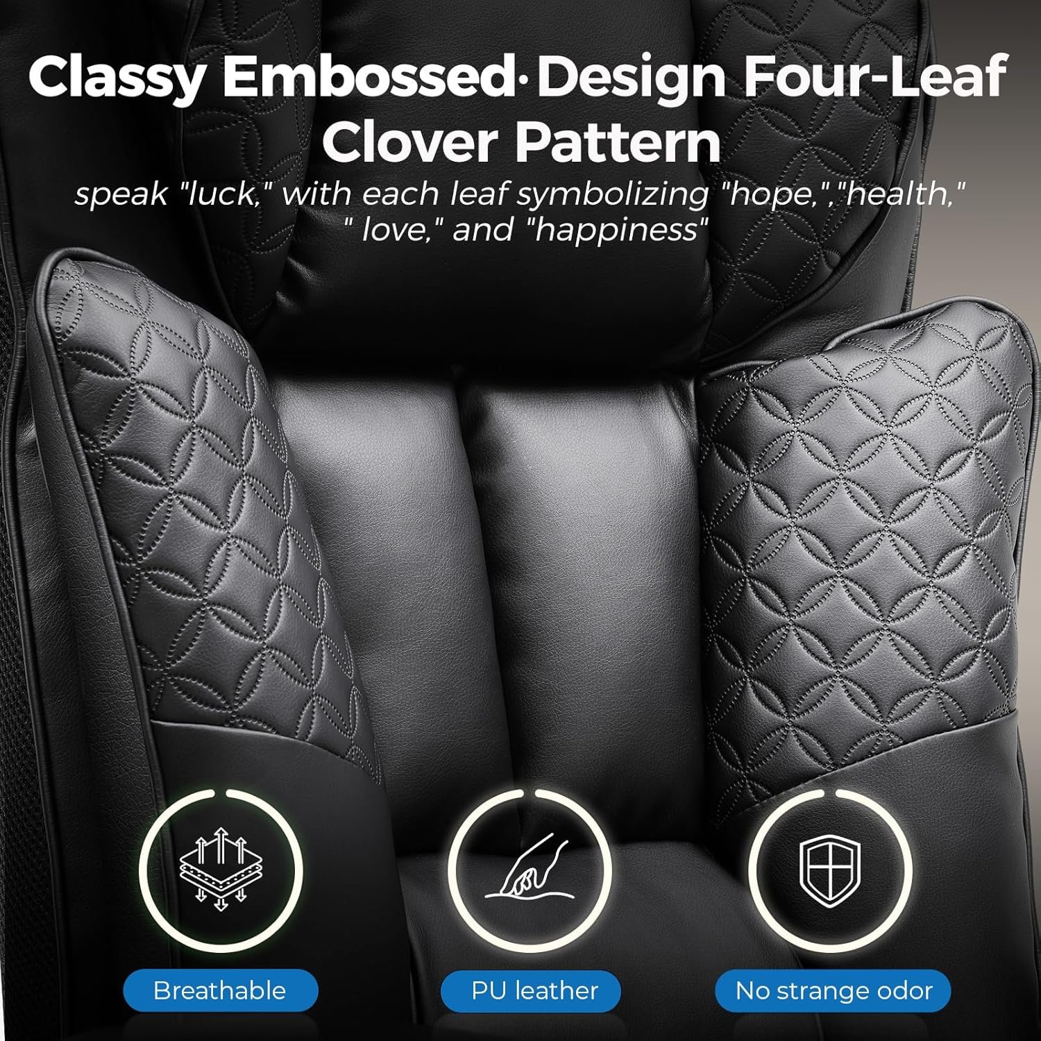 - Deluxe PU Leather & Pocket Spring: Features scratch-resistant PU leather with a unique embossed clover pattern, paired with pocket spring back support and a plush pillow for sofa-like seating that adapts to your posture.