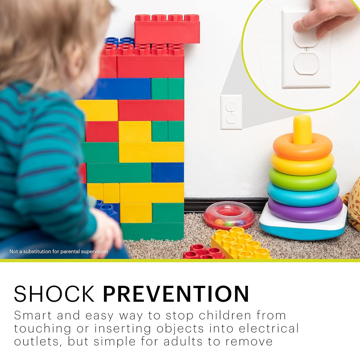 - Child Safety – Covers unused receptacles to help babyproof living rooms, bedrooms, kitchens and playrooms by preventing objects from being inserted into outlets