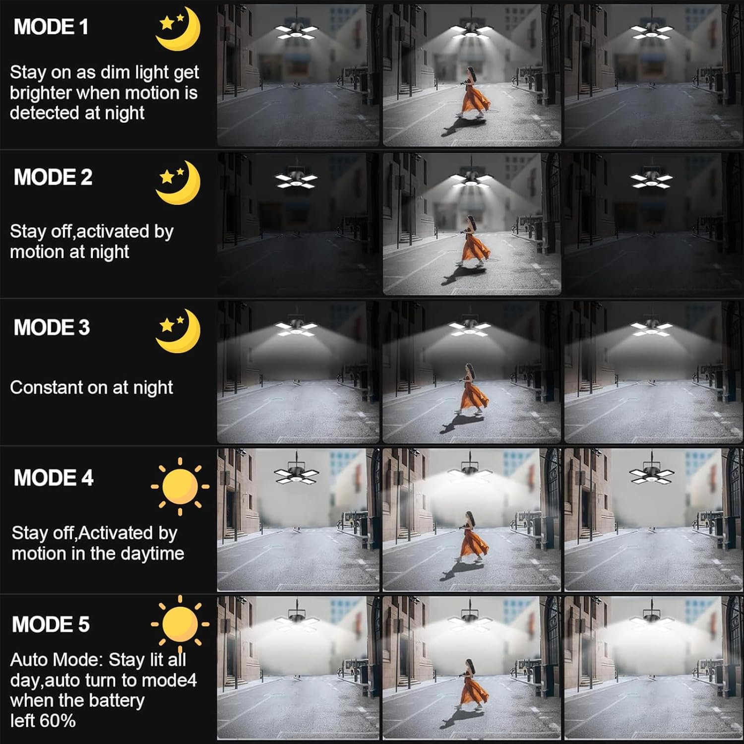 - Remote Control & Flexible Modes: With five lighting modes and a dedicated remote, you can fine-tune brightness (100/75/50/25%) and timers for complete customization. The 16.5-foot cable split design lets you hang the light wherever you need, while placing the solar panel for optimal sun exposure.