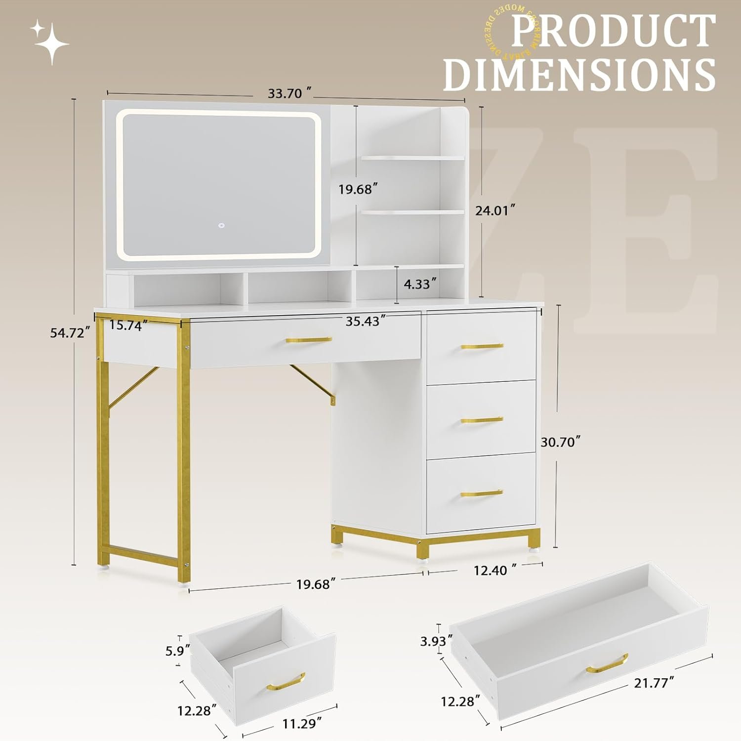 - Modern Vanity Aesthetics: The gold metal frame and premium engineered wood instantly upgrade bedroom furniture and match various decor styles, from minimalist to contemporary.