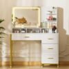 Who Should Buy COMHOMA Vanity Desk with Mirror and Lights, Makeup Vanity Table with 4 Drawers & Storage Shelves, Large HD Mirror, 3 Color Modes & Adjustable Brightness, Modern Dressing Table for Bedroom, Pearl White?